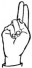 На ћирилици написано ДАНИЈЕЛА ОКОШАНОВИЋ састоји се из 18 слова [?]. Исписано ћириличном једноручном азбуком за глувонеме: